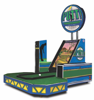 A Hole-In-One For Any Location! The Putt! Championship Edition is the first video golf game to use a real putter and golf ball, and two nine hole courses equals 18 holes of challenging and competitive miniature golf play! Putt! features eighteen virtual miniature golf courses. 1-4 players can compete against each-other with customizable balls and themes. With all the hidden features and compact size of this game, it's perfect for your next event.